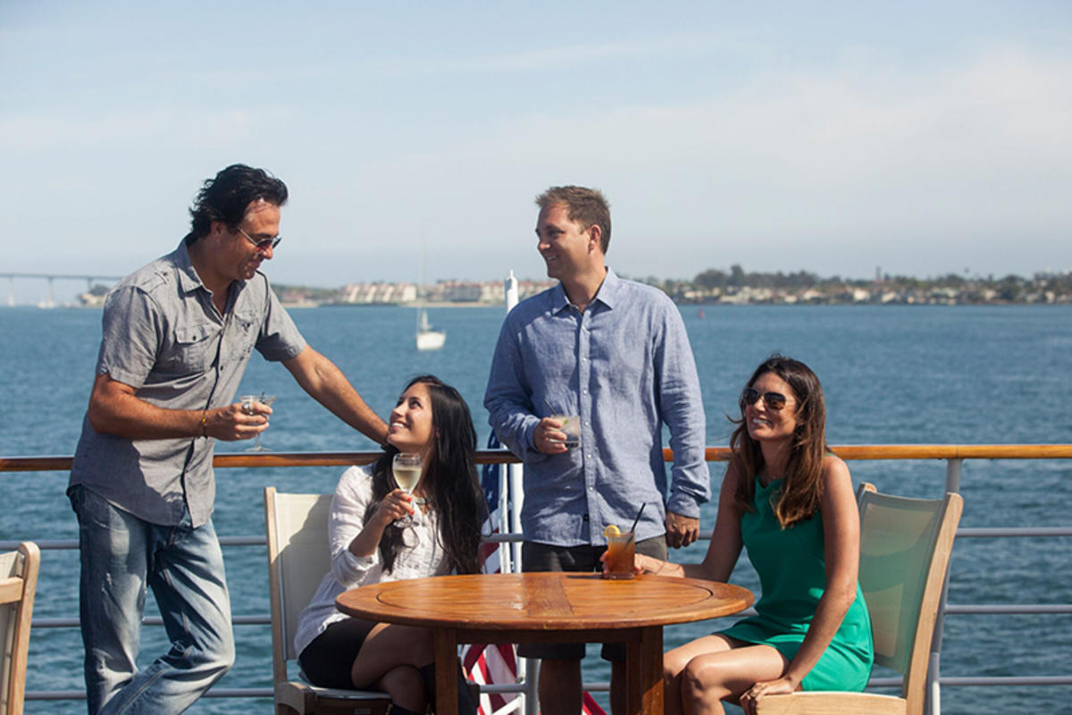 For luxury on a smaller scale, take in the San Diego waterfront aboard Quiet Heart. Experience gourmet cuisine and stunning views in a truly personal atmosphere. Your guests will love Quiet Heart’s large open-air decks, refined furnishings, and impeccable service. She is the only Flagship vessel that allows guests to visit the captain wheelhouse providing another unique view of the bay and skyline.